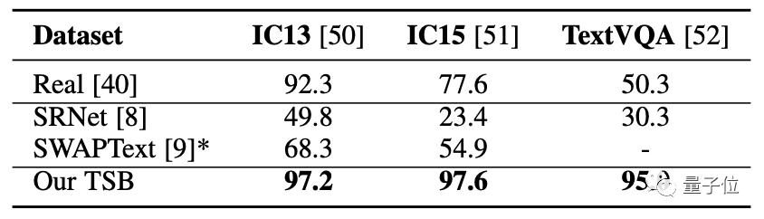 在文字识别的准确性上,TextStyleBrush在三组数据集中的表现都不错: