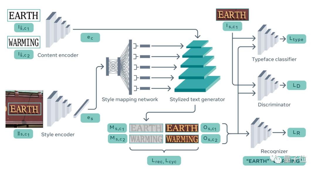 为此,在训练的时候,Facebook引入了一种创新的自监督训练方法,结合风格分类、文本识别(OCR)和GAN三种模型来保留输入的风格/文字内容,再决定要替换哪个。