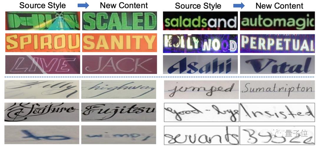例如,在文本识别上,让TextStyleBrush生成文本图像后,模型会用一个预训练文本识别结构来“判断”图像的文字内容,并给它打分。