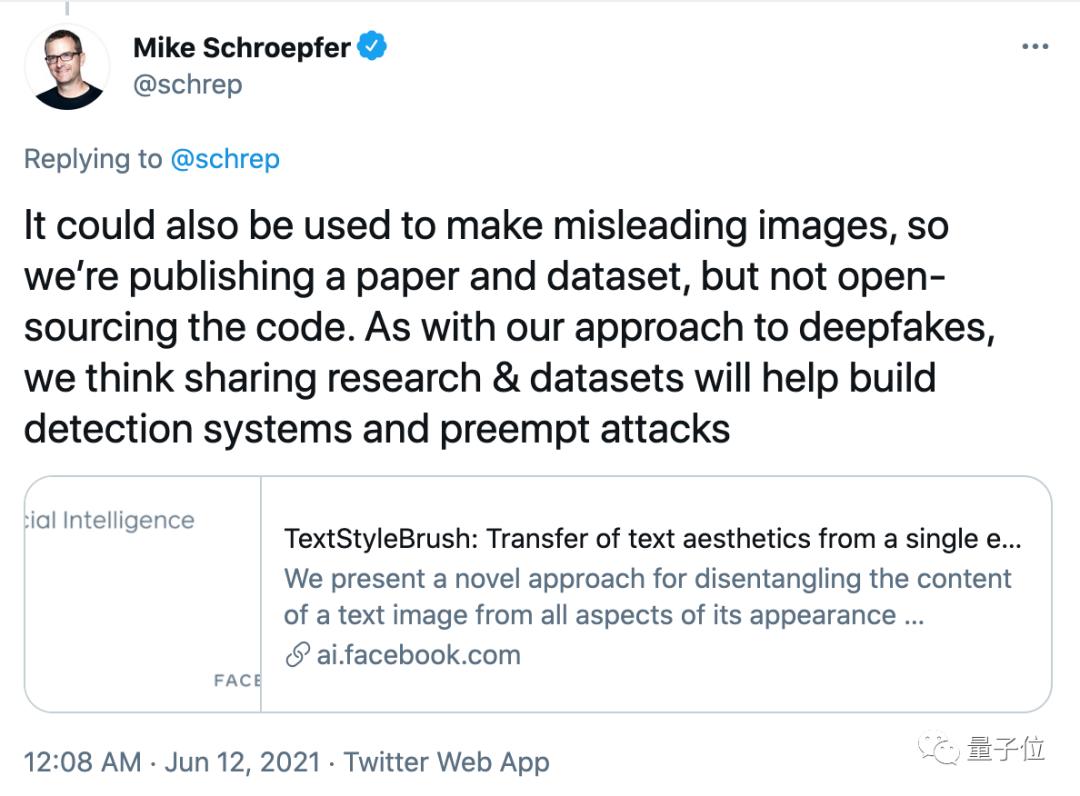 分享研究和数据集,也更多是为了预防文本版Deepfakes。