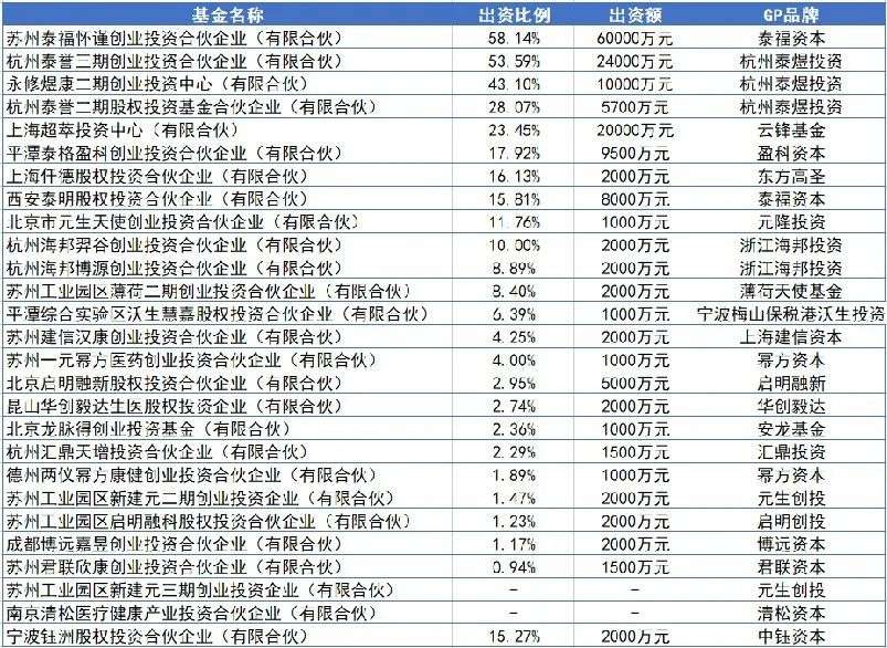 泰格医药投资的基金汇总(部分),出资额以工商登记为准