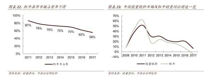 在这样的市场环境下,东鹏能否借助资本力量,像上市前铺天盖地宣传的“中国功能饮料第一股”一样,将红牛从56%的市场份额持续拖下去,直到自己成为功能饮料一哥,值得我们持续关注。