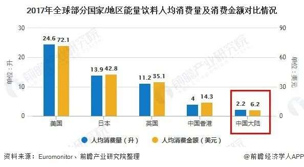 据浦银国际数据显示,中国人均消费功能饮料2.2升,年消费量约为6.2美元,人均消费量仅为香港地区的50%,也只有日本、美国等功能饮料消费量较高地区的10%-15%。从长远来看,中国的功能饮料市场仍有很大的发展空间。