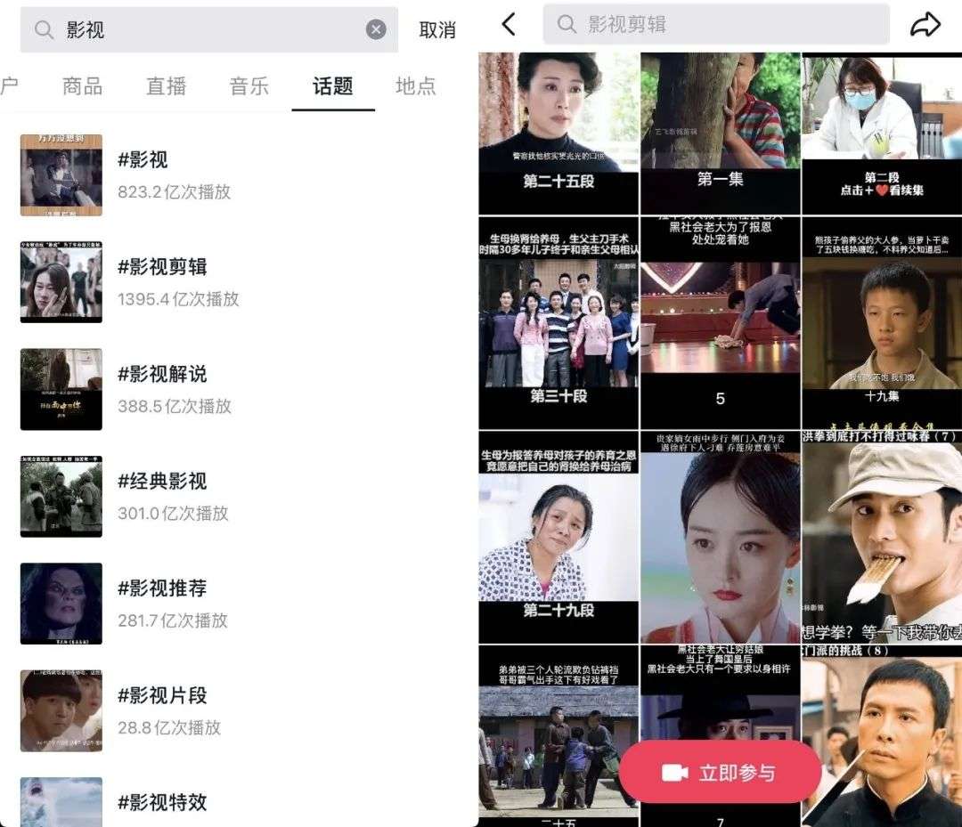 据深燃观察,在B站影视杂谈板块,腾讯视频热播剧《斗罗大陆》,爱奇艺热播剧《爱上特种兵》,优酷已经完结的《山河令》等相关影视二创赫然在列,且播放量极高。在抖音上,“影视剪辑”话题播放量达1395亿次,今年腾讯视频热播的《锦心似玉》等影视作品CUT还在更新。