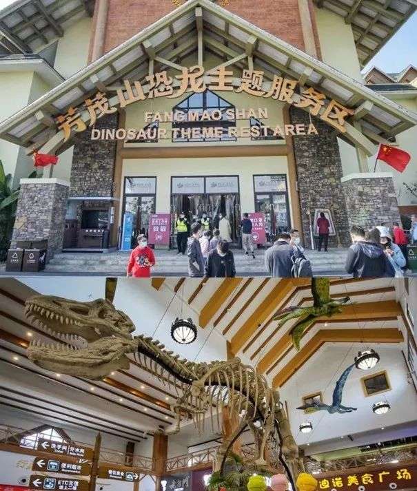 同样在江苏,常州的恐龙园非常出名,于是,恐龙成为了常州某个高速服务区的主题。