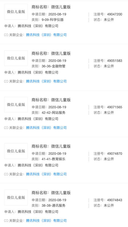 于是在前段时间,一份腾讯的专利文件解释了微信接下来在未成年人领域的发展方向——腾讯科技申请了多项「微信儿童版」商标。在不久之后,我们很可能看到微信正式发布「微信儿童版」。