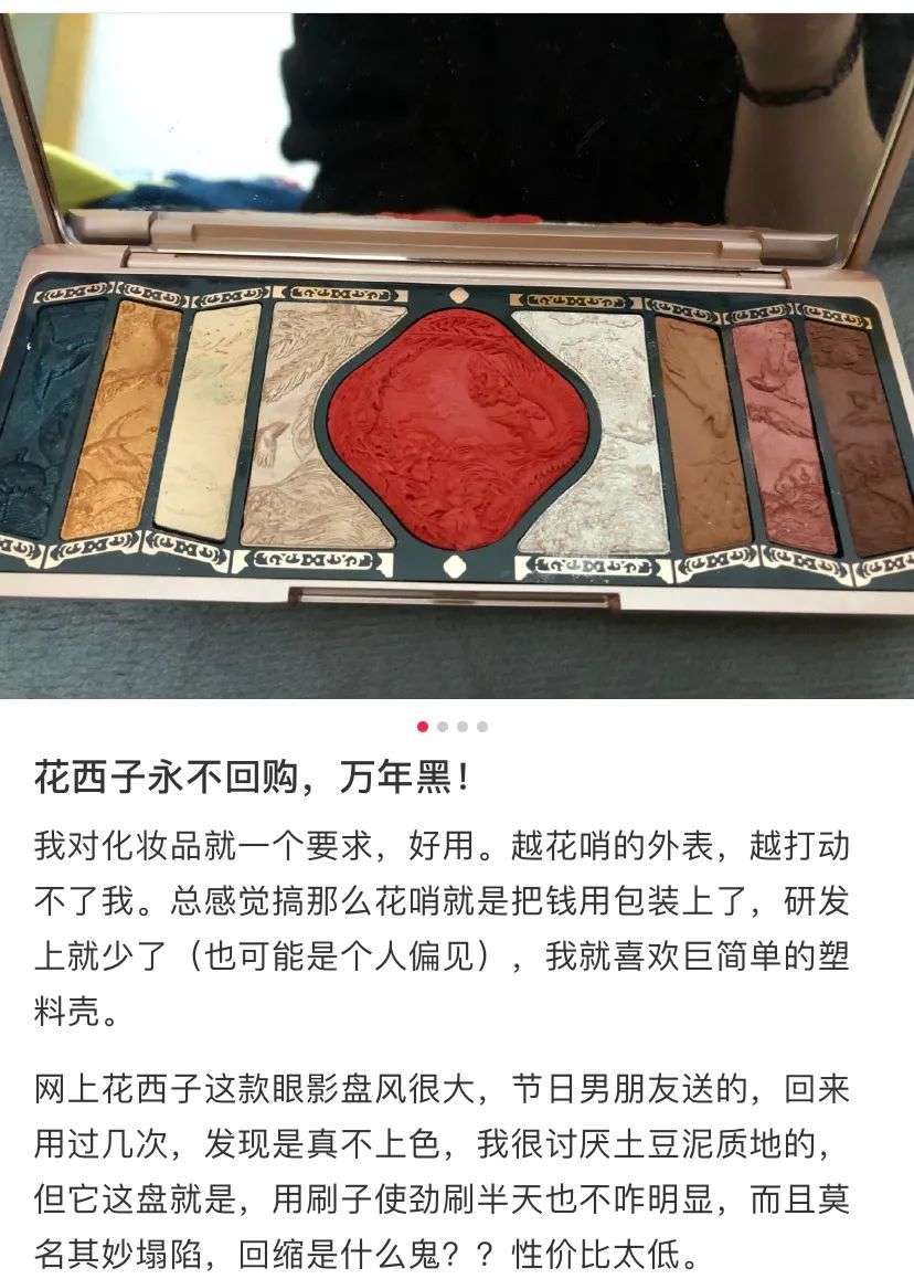起名跟包装都颇费心思的百鸟朝凤眼影盘,也被不少网友吐槽飞粉不上色、色号不实用、比例不恰当,还有塌陷回缩的问题……买回家基本就是摆在那里当收藏品了。