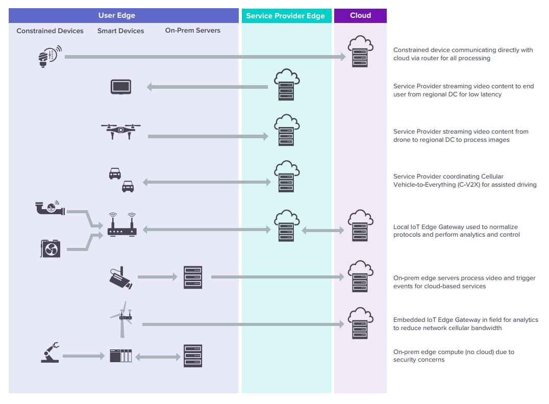 当然,研究报告在对边缘进行了明确的分类的同时,也提出在实际应用中,最终用户边缘和服务提供商边缘不一定必须搭配使用。有些最终用户边缘直接与云平台通信,而有些情况服务提供商边缘就可充分满足需求。