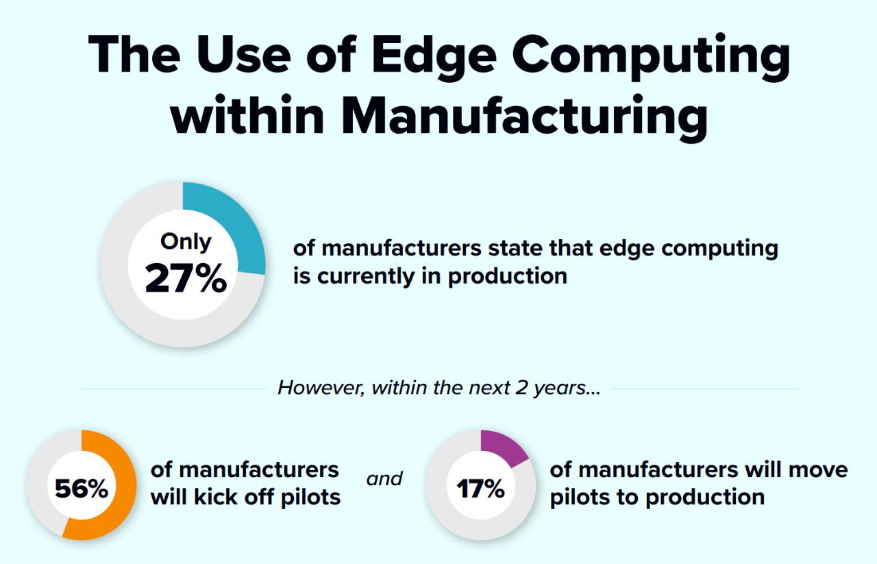 因此预计未来两年,将有56%的制造企业开始试点边缘计算,17%的企业将把边缘计算从试点项目融入到常规生产流程中。