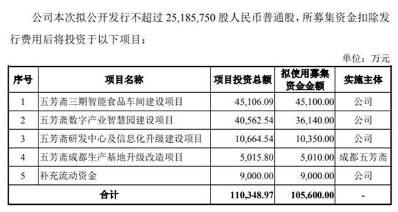 因此,招股书中提到,拟公开发行不超过2518.575万股,拟募资额10.56亿元。五芳斋表示所募资金将用于四个建设项目和补充流动资金。其中,智能食品车间和数字产业智慧园两项建设项目将占去拟募资金约80%。