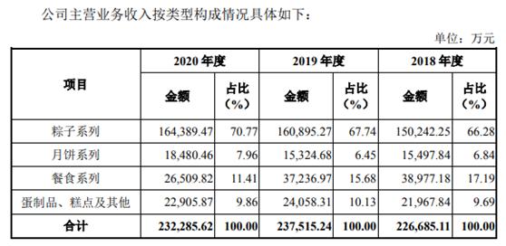 据其招股书显示,目前已形成以粽子为主导,集月饼、汤圆、糕点、蛋制品、其他米制品等食品为一体的产品群,拥有嘉兴、成都两大生产基地,并建立起覆盖全国的商贸、连锁门店、电商的全渠道营销网络。