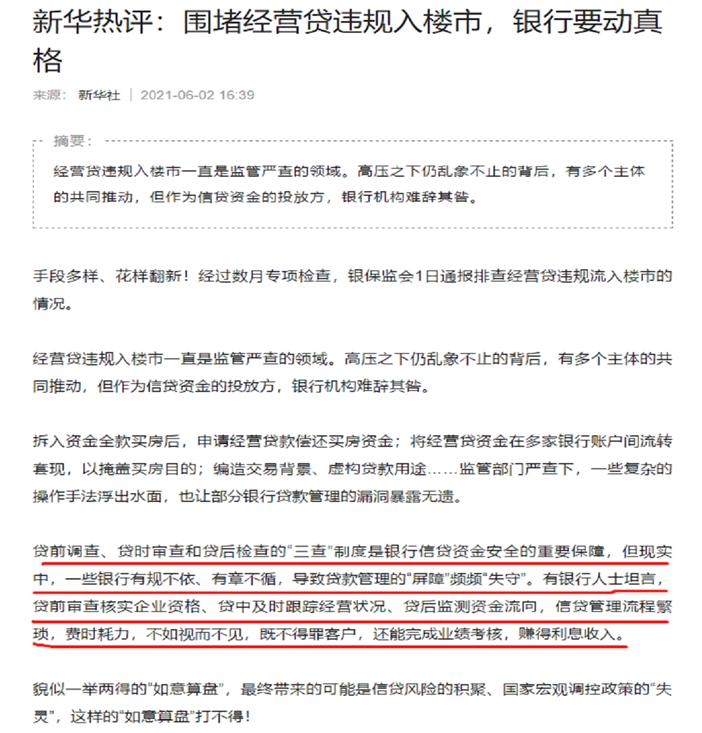 这让我想起去年4月,深圳整治经营贷的案例。上面来检查,大家异口同声,都不搞违规的经营贷(披着实体的外衣的贷款,进入楼市)了。大银行比较听话,但话音还在绕梁,小银行悄悄抢份额。大银行一看,这不行啊,也就重操旧业,该咋放咋放。经营贷的乱象,就是这么失控的。
