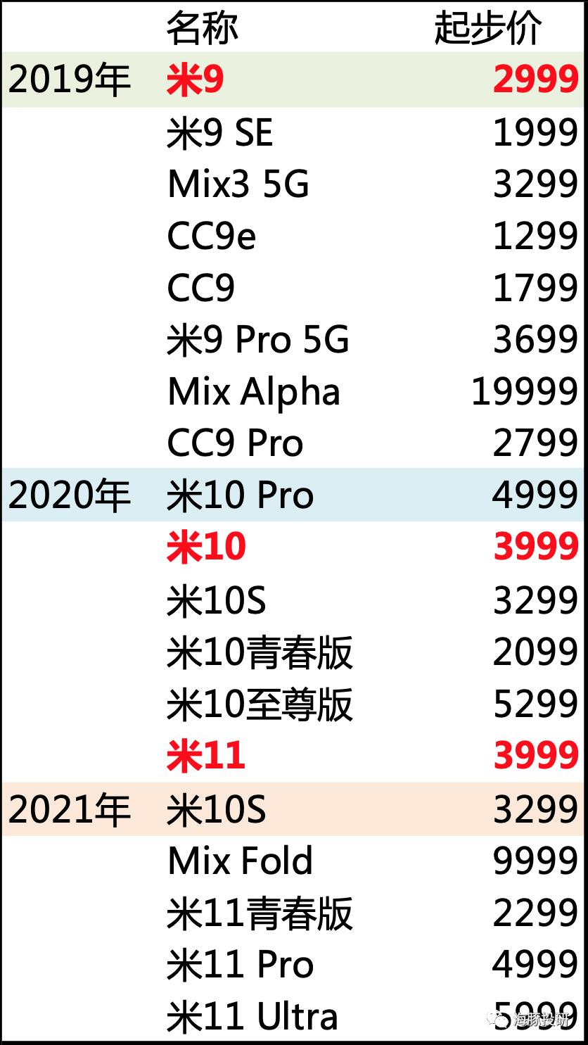 但到2020年底小米11才是真正用来打销量的高端机,因为这款手机在定价上并未在小米10的基础上进一步上拉起步价,而是继续锁定在了3999,是一款真正承担走销量目的的高端机。