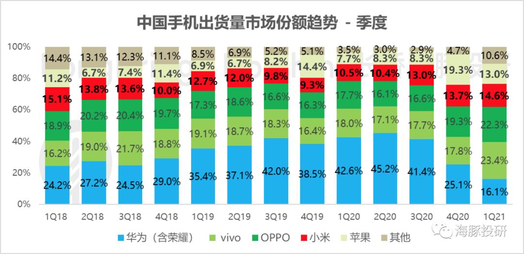 对于以上两点,且不说一季度已经印证了欧洲和拉美出货迅猛,可以弥补印度市场疫情带来的影响,更重要的是,海豚君认为当下研究小米,需要对短期信息去噪,把眼光放得更长远,立足更高行业竞争格局站位。