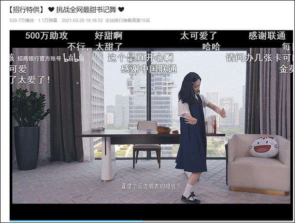招商银行在今年3月发布的“书记舞”视频,在B站已有529.8万的播放量。