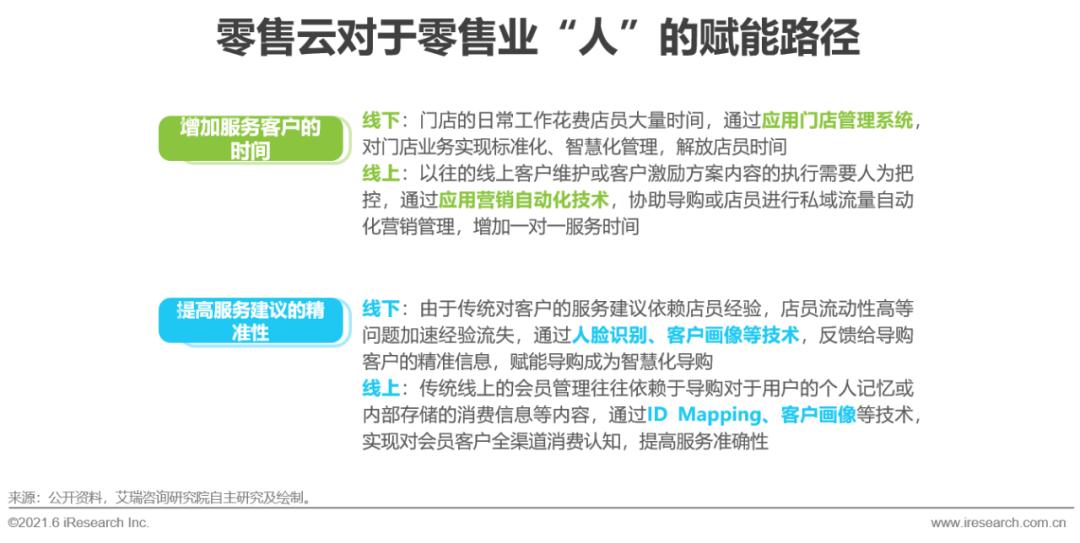 伴随着以大数据、云计算和人工智能技术为核心数字化技术体系的持续发展和完善,零售企业纷纷尝试利用数字化手段解决“人-货-场”所遇到的问题。此外,全渠道零售的进场加速,为零售企业带来大量碎片化的数据,传统数字化工具难以对所有的零售数据进行统一整合和深入挖掘,零售云的数据架构以其高效的兼容能力优势从整体上推动零售商的数字挖掘能力提升,并以此为赋能平台,叠加零售商户自身业务整合,为零售商,特别是中小零售商提供系统化的零售数字解决方案。