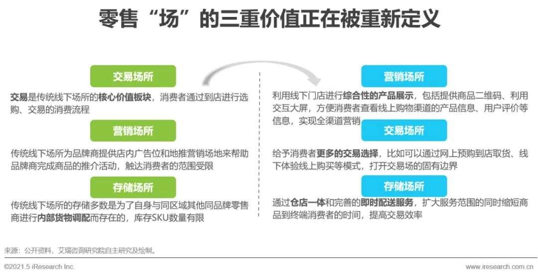 传统意义上零售的场包含“交易场所+存储场所+展示场所”三重价值,消费者通过进入门店来完成商品的选择及购买,而传统的零售商则通过提供交易场所来实现零售双方的供需匹配。所以,对于线下零售商而言,自身的铺店规模、铺店密度和门店周边的人流情况是实现商业价值变现的核心因素,交易板块是传统零售的中枢。然而,随着网络购物的快速发展,物流网络的搭建完善以及可选商品增多使得消费者具有话语权,货找人模式到来并逐渐深入零售业态。此外,伴随“场”的边界越发模糊,营销活动地点也不再固化。营销不再只通过电视广告、地推、纸质广告等途径来覆盖消费者,全渠道营销、自动化营销及利用线下门店提供展厅展示功能等受到重视。对于场的存储功能,传统人工化管理,让整体供应链的流通效率过低,信息通达不顺畅的痛点阻碍零售商更好的服务消费者。在网络技术发展、物流运输完善和消费者即得性需求提升的背景下,零售云可以帮助零售终端进行有效的供应链管理,完成商品到消费者的高效链条,缩短了货到人的时间,降低了流通损耗,优化消费者购物体验,并提升零售商线上化销售GMV。