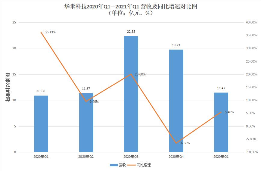 财报数据,2021年Q1,小米产品贡献营收较去年下降39.9%,公告披露主要系季节因素与小米手环6即将上市影响。但在本季度,华米营收增速却下滑不少,同比仅增长5.4%,总营收为11.47亿元。