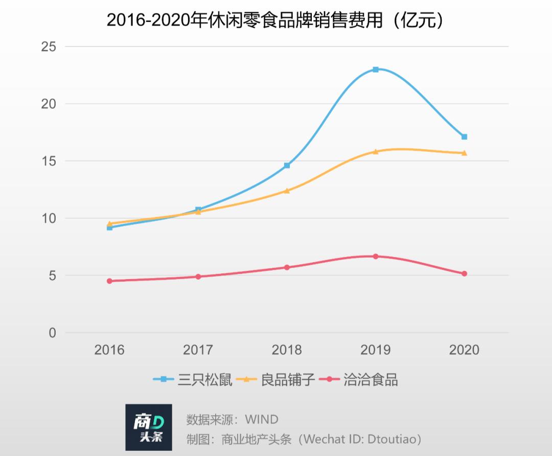 可以看出,三只松鼠及良品铺子,成本压力越来越大,而洽洽食品则通过渠道整合,降本增效。对比三者销售费用可以看出,自2017年开始,三只松鼠和良品铺子销售费用增长明显,而洽洽食品则相对保持稳定。