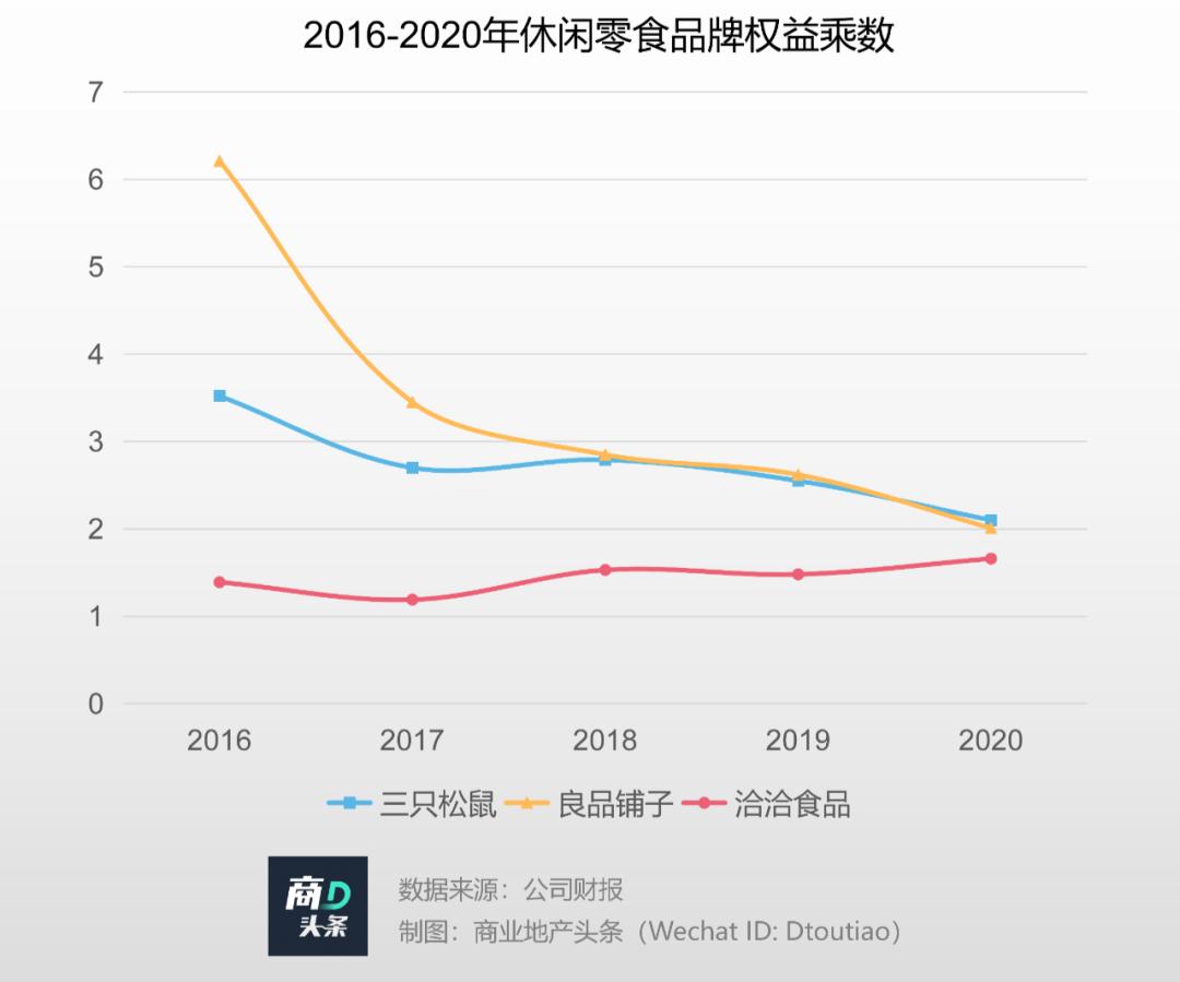 逐利的资本市场,高净利润率的洽洽食品市值已近300亿元,而三只松鼠和良品铺子的市值则在200亿元左右。这种差异反馈在资本结构上,可看出三只松鼠和良品铺子财务杠杆率高于洽洽食品。