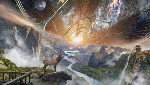 蓝色起源分享的艺术渲染图,描述了未来太空基地场景