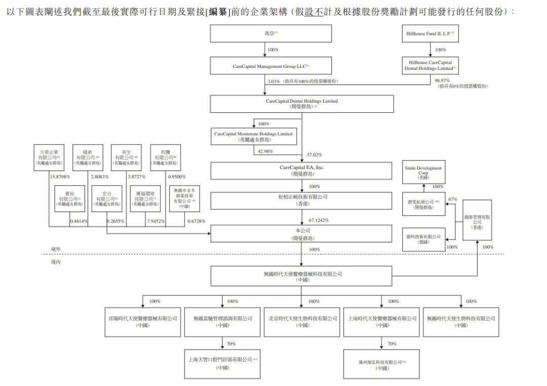 值得注意的是,时代天使是一家由产业资本控股的公司,控股方为专注于全球口腔领域的产业投资者——松柏投资。2015年,松柏投资联合创始人、主管合伙人冯岱以6394万美元收购了时代天使全部股权,后又给创始团队让渡了部分股份。其中,时代天使原掌舵者、现CEO李华敏在IPO前持股15.88%。