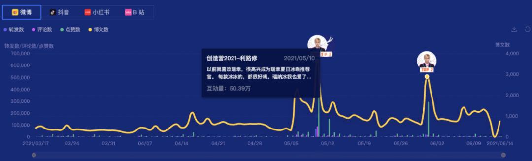 品牌切忌不可一味复制其他品牌与利路修的成功案例,导致用户审美疲劳的同时,还忽略了流量的可持续性。未来品牌与利路修的合作,仍需借助社交舆论数据,洞察品牌和利路修的特别的切合点开展合作。比如可以考虑联动的方式,利用利路修和其他《创造营2021》学员、娱乐明星之间的联动产生额外话题效果,借此把品牌故事讲的丰富。