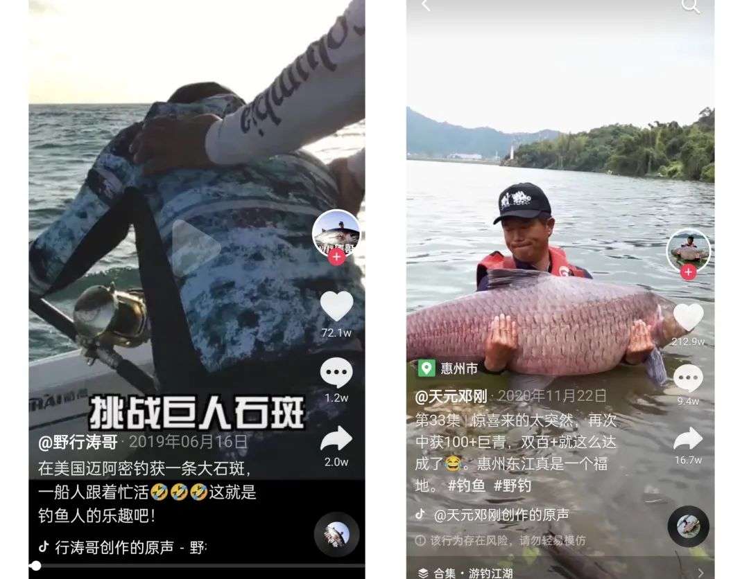 抖音钓鱼类网红“野行涛哥”和“天元邓刚”