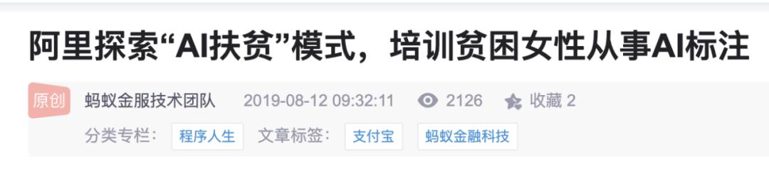 但在2019年,阿里开始探索“AI扶贫”模式公益新模式,支付宝公益基金会、阿里巴巴人工智能实验室联合中国妇女发展基金会启动了“AI豆(谐音‘爱豆’)计划”。该计划通过人工智能产业释放出的大量就业机会,并且提供免费职业培训,让贫困群众尤其是女性成为“人工智能培育师”,在家门口实现就业脱贫。