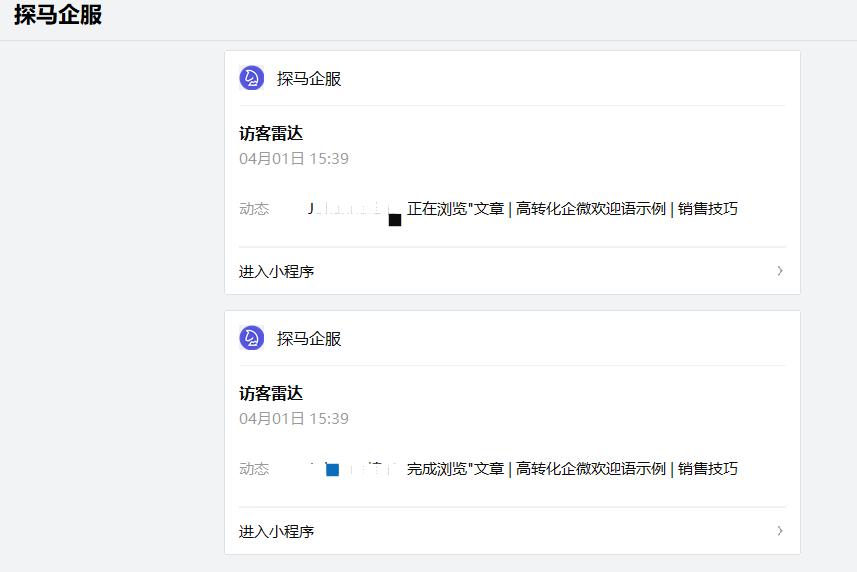 探马SCRM为企业提供12种营销素材,并且当员工发送营销素材之后,如果客户点击查看,互动雷达就会提醒员工,客户查看了哪条素材,并且查看了多久,员工可以第一时间知道客户的兴趣所在,在销售过程中可以有方向的发力。