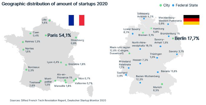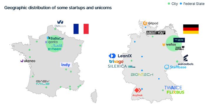 如果从创业公司的地理分布看,法德创业公司高度相似。