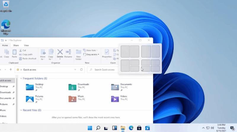 Win11 的原生分屏管理功能,和 Moom 非常像,只要把鼠标移动到窗口最大化的按钮上,就可以选择不同的布局: