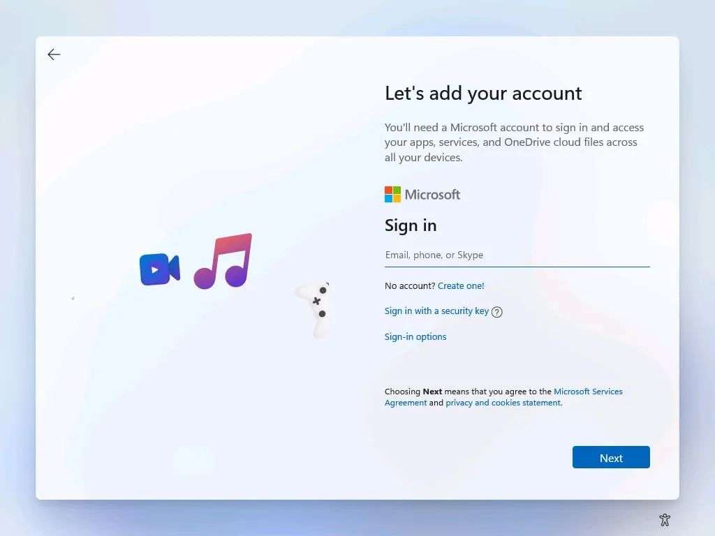Win11 的用户微软账号登录界面: