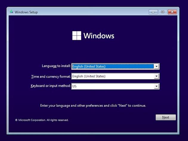 开始安装流程,用户能看到这样一个界面, 选择语言和时间/货币格式、输入法等: