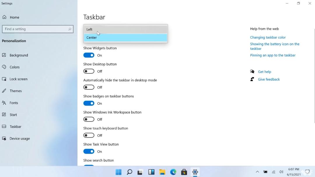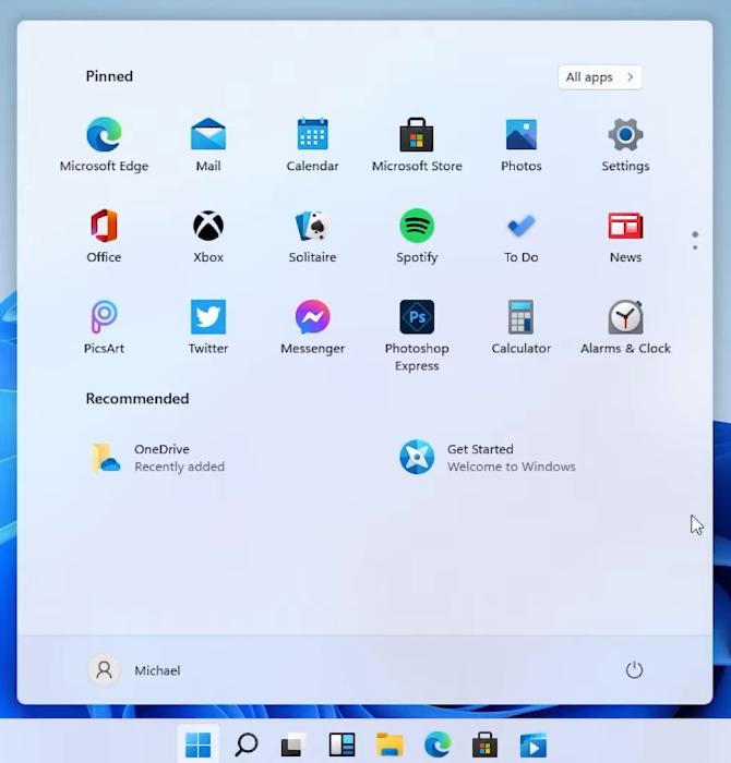 新界面最大的特色就是任务栏,包括开始按钮、搜索、常用应用图标等,都是默认居中的: