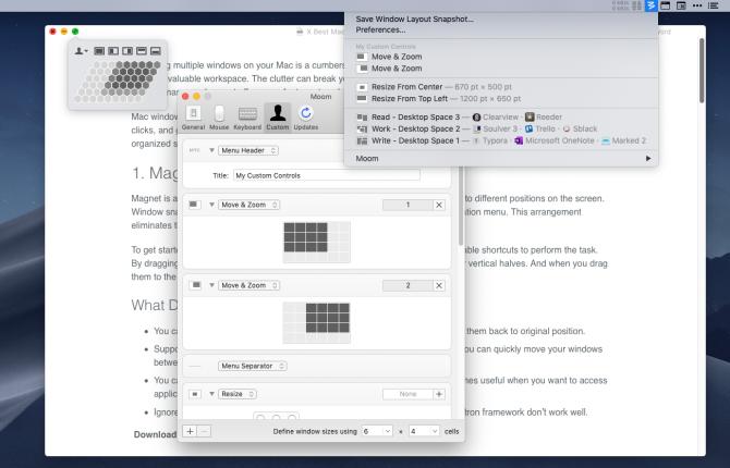 同样,macOS 的原生分屏多任务也挺笨的,会多创造一个屏幕空间,没法让两个窗口在当前单独屏幕空间里分割。而macOS 效率用户可能知道 Moom、Mosaic 这类第三方软件,其中 Moom,只要鼠标移动到窗口控制按钮上,就可以快速在屏幕上分配空间: