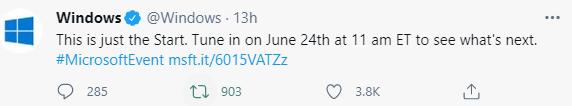 并且,就在安装镜像文件泄露之后,微软官方 Twitter 账号还发了一条内容,宣称”一切才刚开始“……