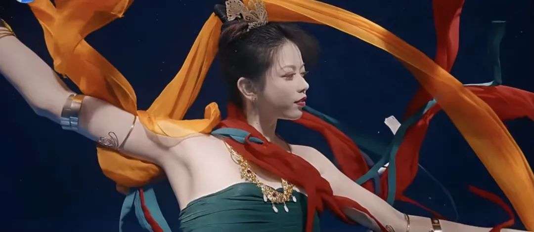 虚实场景间的穿梭转场,与霍尊节目《莲鹤方壶》里的“鹤”互动,其实都借助了VR技术才得以实现。无论场景如何切换,唐俑少女们的故事是连续的,整场晚会也以此展开。