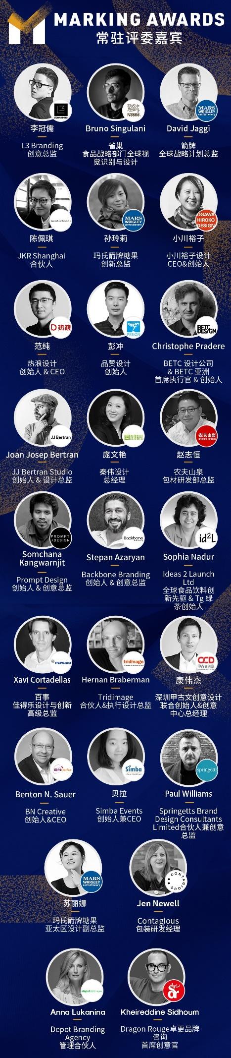 Marking Awards 2021共收到近400组专业参赛作品。我们邀请到25位来自全球知名食品饮料品牌的设计总监,和世界一流设计机构的创始人/创意总监,构成豪华国际评审团,从设计性、传达性、前瞻性、功能性、商业价值、可持续性六大维度全方位为参赛作品评分,并从中选出五大类别奖项以及重磅的综合奖项,最终获奖率仅为8%。邀您一同见证与鉴赏最佳包装设计!