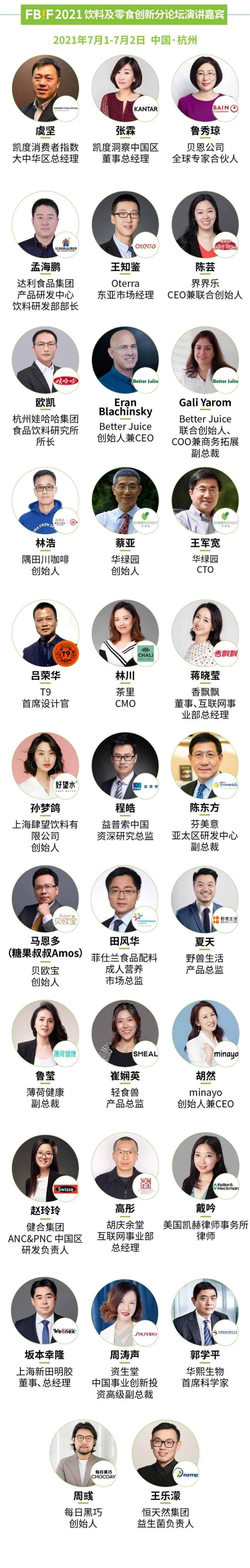 为期3天的论坛将从行业战略、产品、营销、包装、投融资不同角度讨论行业趋势及创新案例,170+位嘉宾将带来110+场演讲及互动分享,还包含两大赛事颁奖礼挖掘并褒奖行业创新。同期20000㎡的Food Show食品创新展将呈现11大主题活动及370+展商。本文将提前与您预览FBIF2021的精彩看点。
