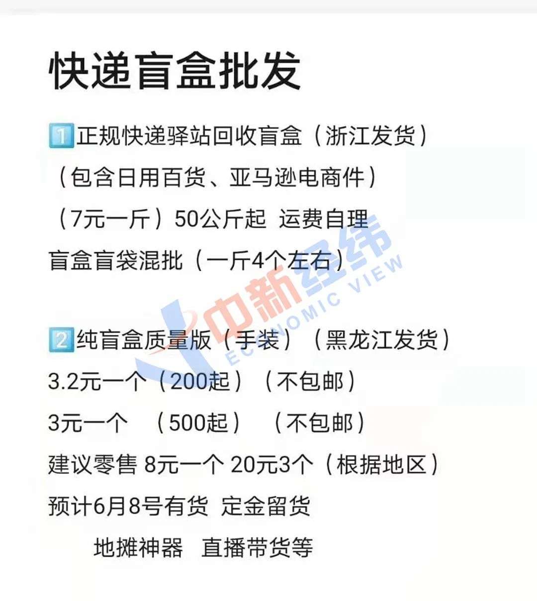 据中新经纬记者了解,除了中间商,客户还可以直接从快递网站、分拨中心等处直接批发快递盲盒。
