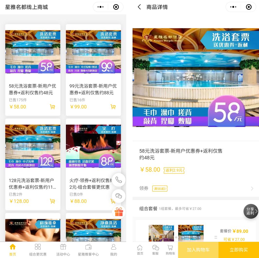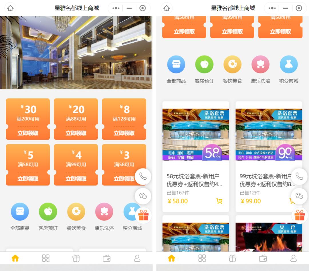 当然,除了出于推广考虑,另一方面星雅名都为提升酒店多元化的营收能力,更好地抵抗单一收入机构带来的财务风险,将经营的侧重点逐渐偏向非房盈利项目,如借助凡科商城的强大商品管理能力,上线餐饮美食、康乐洗浴等项目。