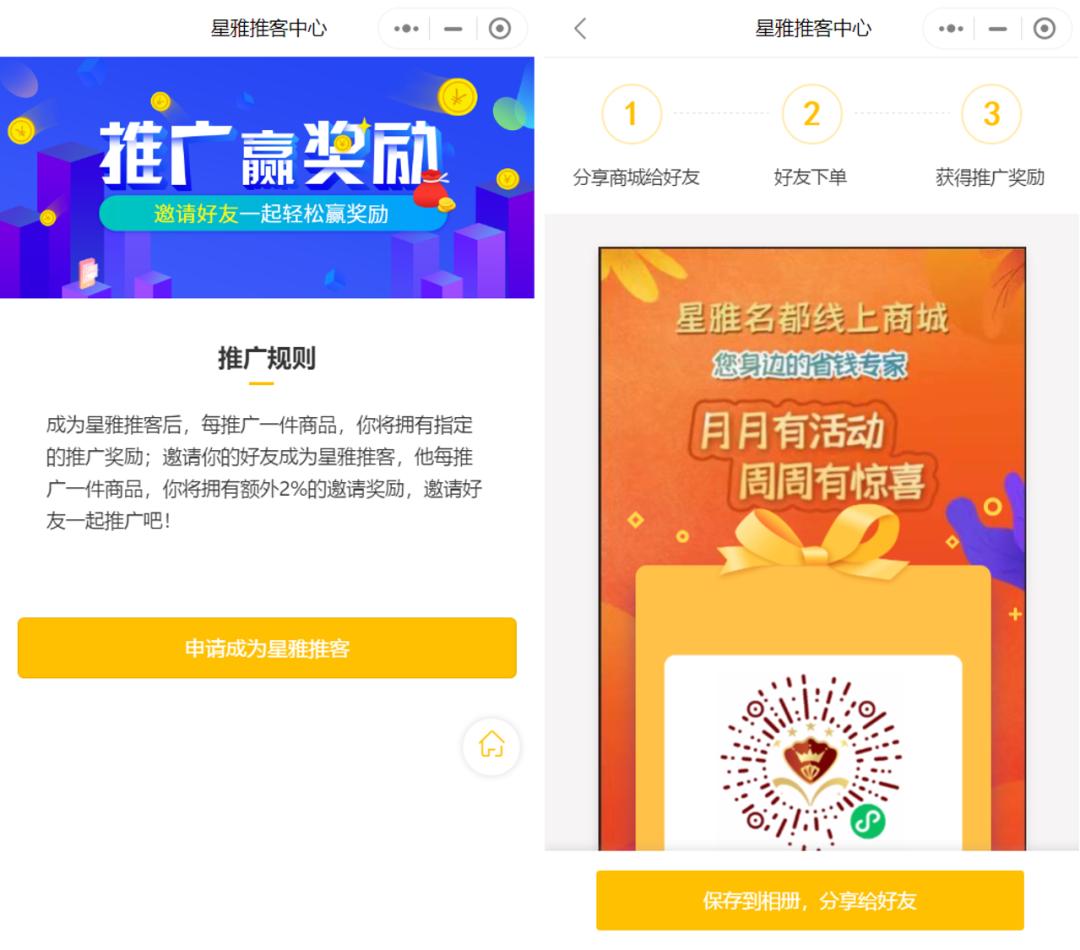 为进一步打开销路,星雅名都使用凡科商城“推广员”功能进行推广,将过去依托平台销售的“商家-平台-顾客”的模式,转变成“商家-顾客-顾客”的分销模式,大大地降低推广成本。