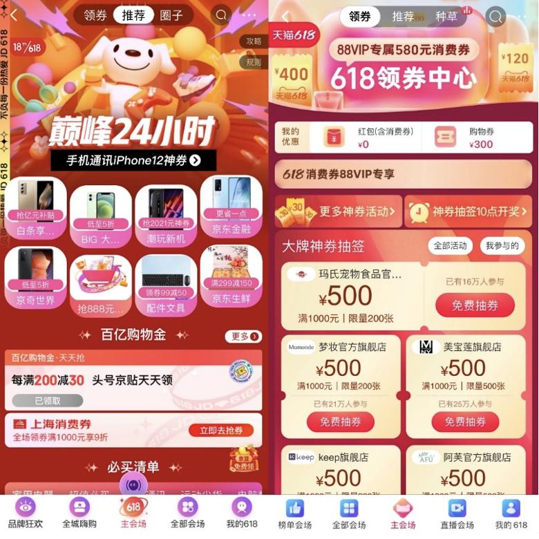 阿里则存量和增量两手抓,一边加强会员体系建设,天猫88VIP和品牌会员在本届618将享受更多折扣和大额满减红包;另一边在下沉市场力推淘宝特价版“淘特”,聚焦特便宜、特简单、特地道、特放心的普惠消费。