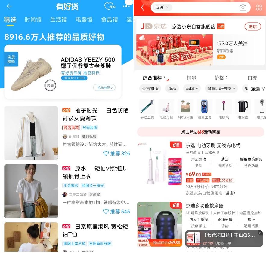 淘宝App有好货、京东App京选