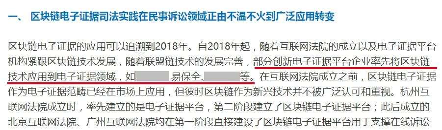 文章指出:自2018年起,随着互联网法院的成立以及电子证据平台机构紧跟区块链技术发展,随着联盟链技术的发展完善,部分创新电子证据平台企业率先将区块链技术应用到电子证据领域,比如易保全等区块链电子证据平台。