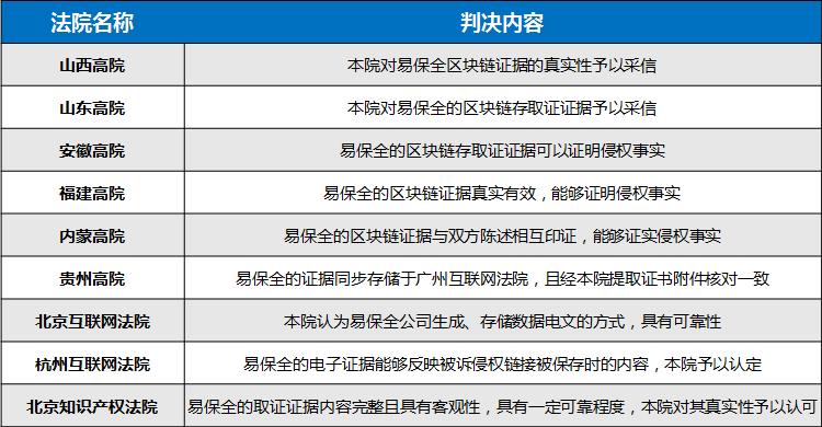 通过多年的技术深耕和司法渠道拓展,易保全不仅被法院纳为典型案例,还被全国多地法院官宣采信。根据中国裁判文书网显示,山西、福建、内蒙、贵州、山东、安徽等多地高院明确认可易保全的区块链电子证据。