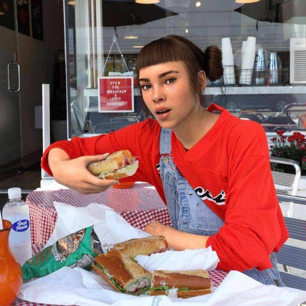 而设定为定居在美国洛杉矶的混血女孩Lil Miquela,从2016年开始在社交媒体上分享穿搭,时尚街拍让她迅速出圈,直到2018年她的虚拟人身份才被曝光。齐刘海、双丸子头,Lil Miquela的外貌并不完美,但脸上的雀斑让她看上去更加真实。