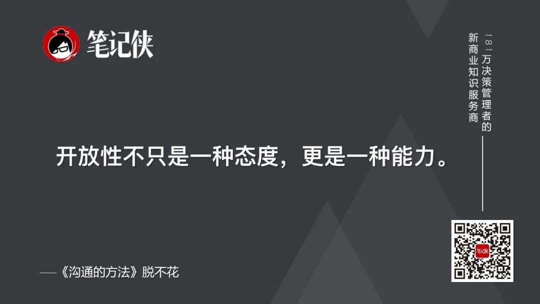 所以,评判一个人开放性的高低,最简单的检验标准就是他有没有从沟通对象那里拿到新的信息,能不能因此输出一个更好的结果。