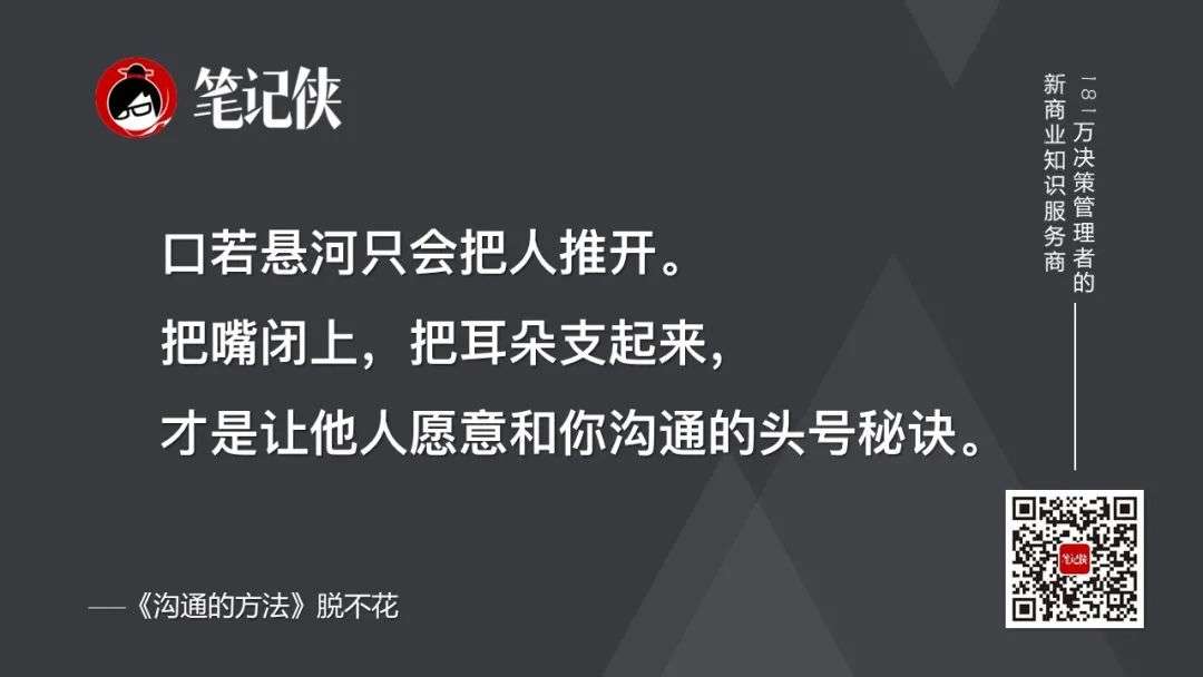 因为他们知道,口若悬河只会把人推开。把嘴闭上,把耳朵支起来,才是让他人愿意和你沟通的头号秘诀。